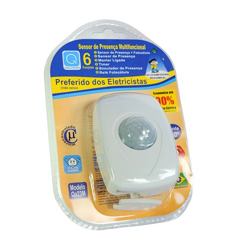 Sensor de presenca 6 funções com fotocelula lente 360° sobrepor articulado branco blister