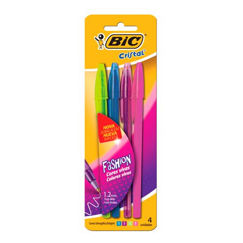 Caneta cristal fashion 1.2 ponta media c/4 blister